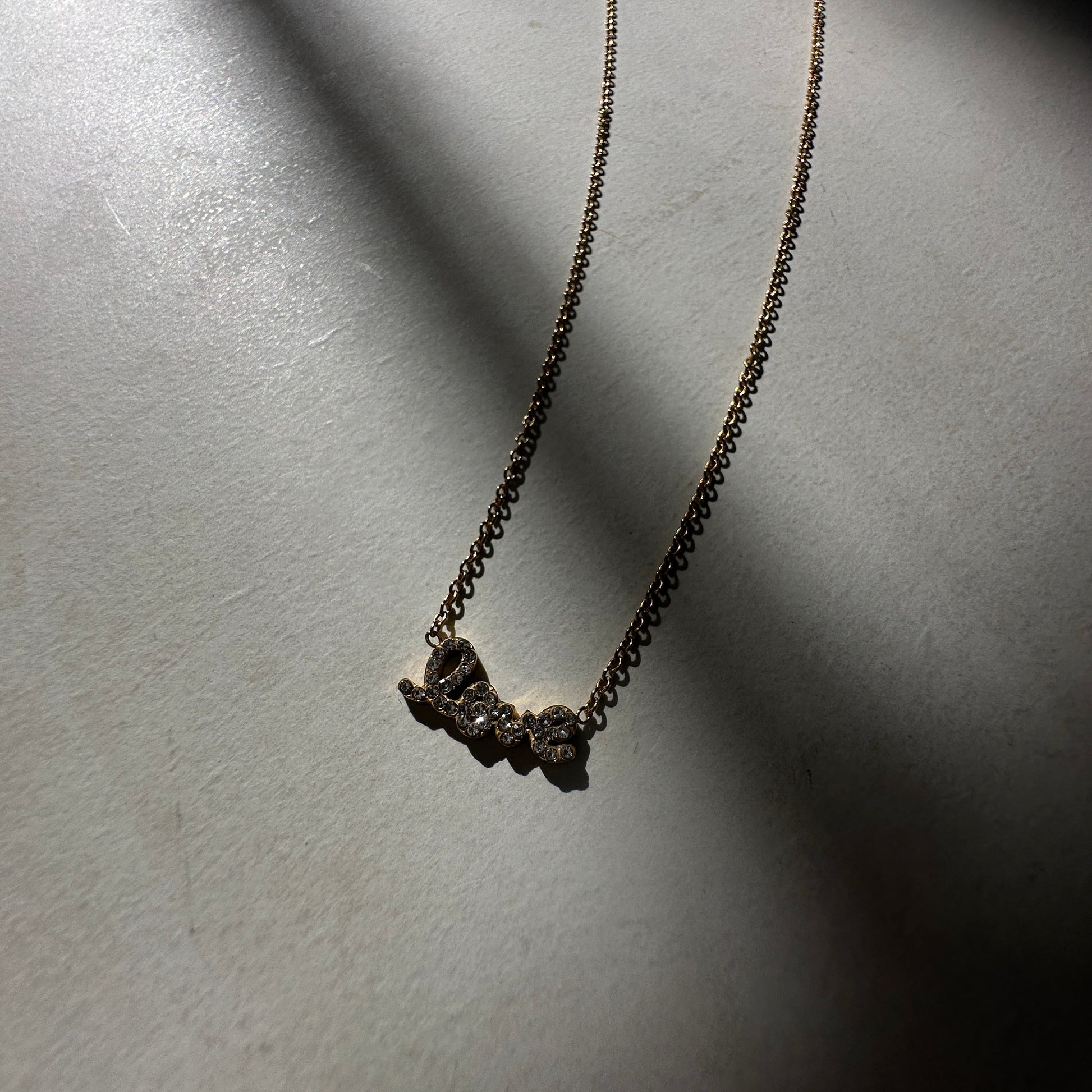 Spread the love with the Con Amor Script Necklace. The delicate chain showcases a gorgeous cursive "Love" pendant adorned with sparkling pave details that shimmer beautifully. Whether you're celebrating romance, self-love, or just want a fun conversation starter, this necklace delivers charm and elegance in one swoon-worthy package. Mix and match with your favorite pieces or let it be the star of the show.
